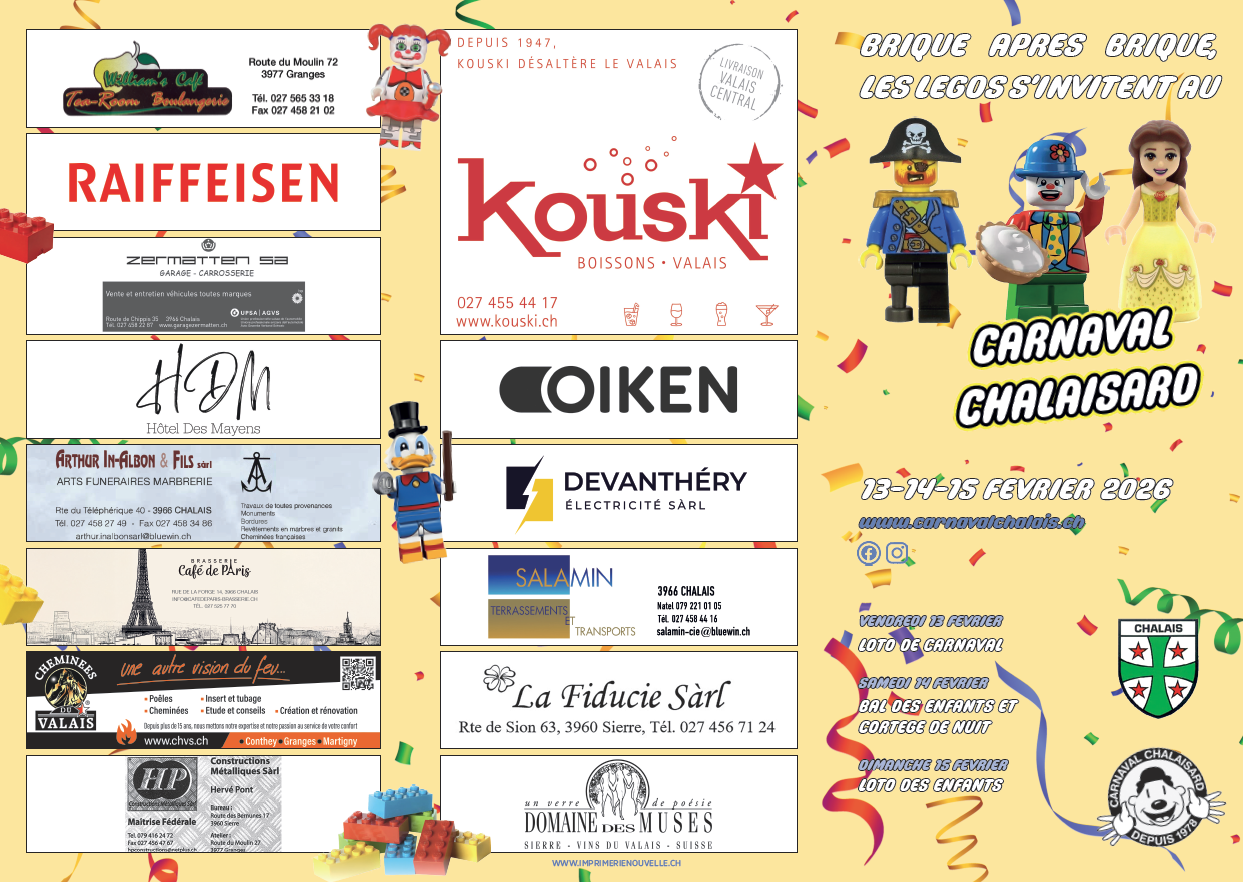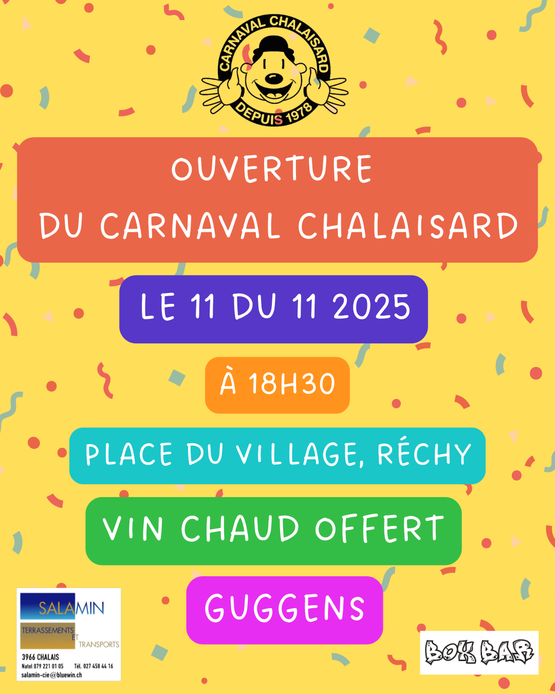 Le Carnaval de Chalais vous invite à venir faire la fête à la salle de gym de Chalais le weekend du 13 au 15 février 2026 !